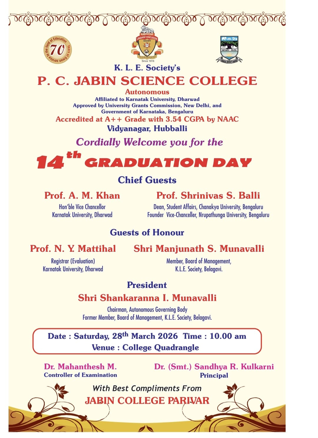 It's an event that makes K L E Society feel proud, recently our chairman Dr. Prabhakar B. Kore, has completed 33 fruitful years as chairman of the society. He has been serving the society as chairman from 16th May 1984.